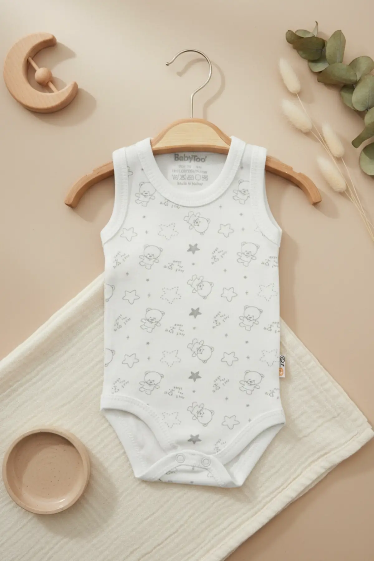 Babydonat markası tarafından özel olarak tasarlanan bu kolsuz erkek bebek body, %100 pamuklu kumaşıyla bebeğinizin cildine maksimum konfor sağlar.