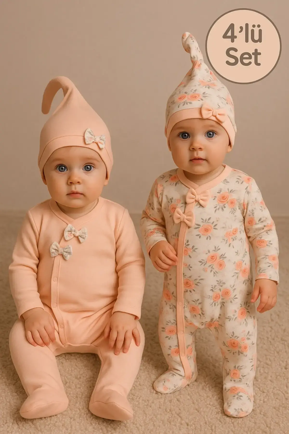 Begi markasının şirin mi şirin çiçek desenli %100 pamuk kumaştan üretilen Kız Bebek 4'lü Tulum Takımı, bebeğinizin tarzını yansıtacak.