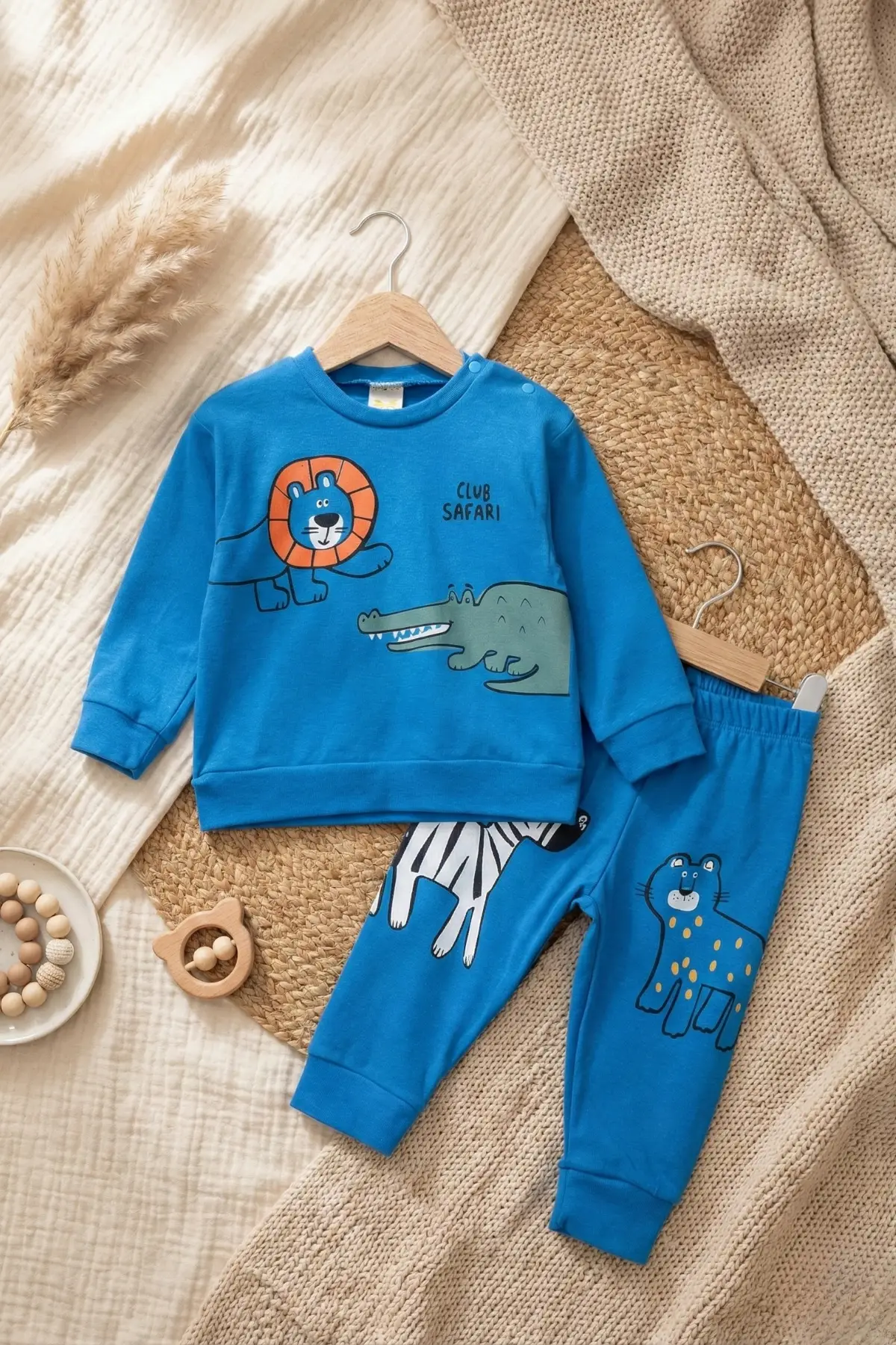 Air Baby markasının yepyeni Clup Safari Desenli Mevsimlik 2'li Erkek Bebek Takımı, şıklığı ve rahatlığı bir arada sunuyor.