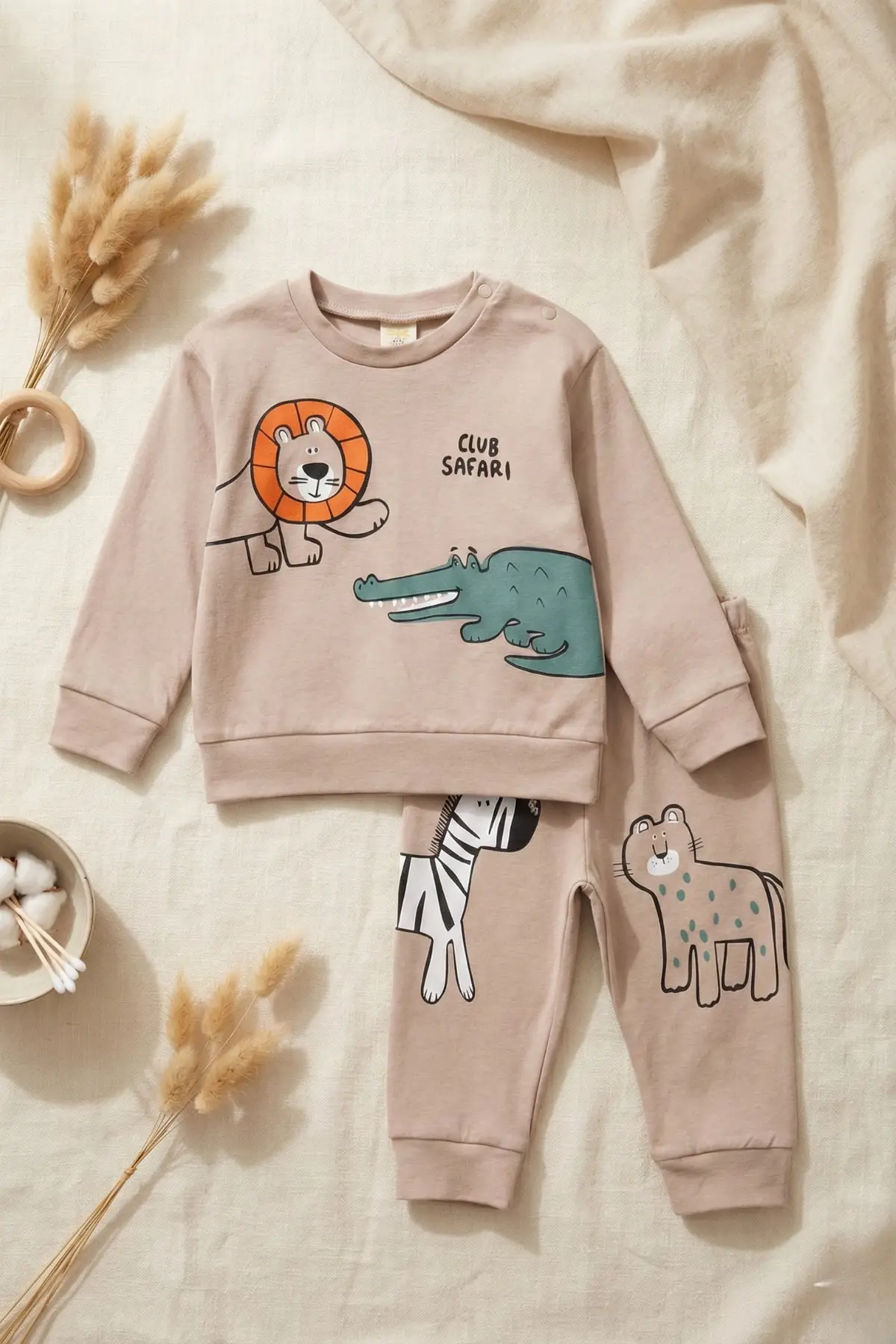 Clup Safari Desenli Mevsimlik 2'li Erkek Bebek Takımı, Air Baby kalitesi ile bebeğinizin konforunu ve şıklığını ön planda tutar.