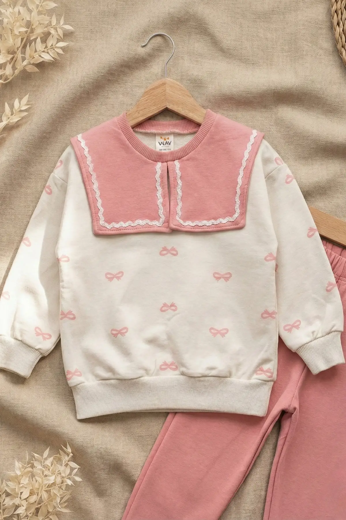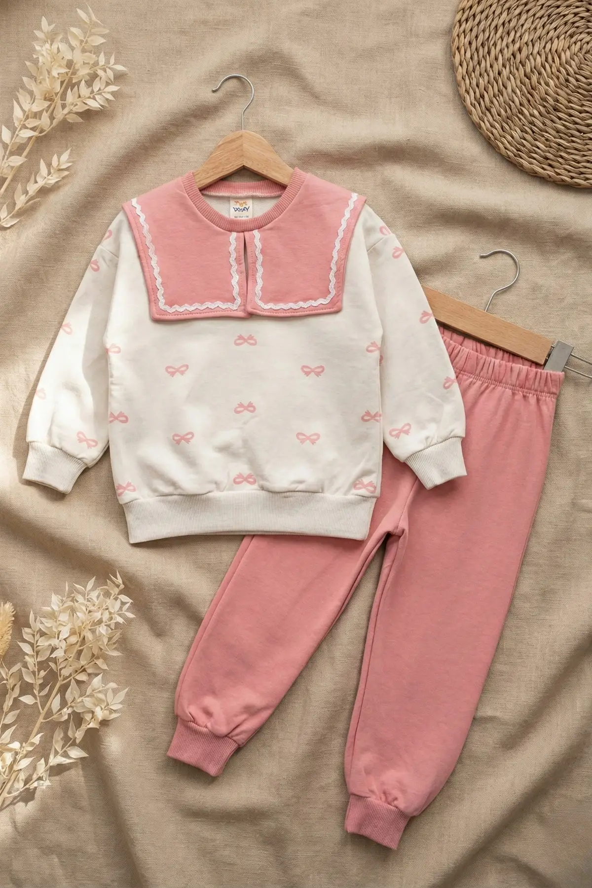 Çocuğunuzun rahatlığı ve şıklığı için Fiyonk Desenli Yaka Detaylı Mecsimlik Kız Çocuk Takım en doğru seçim olacaktır.