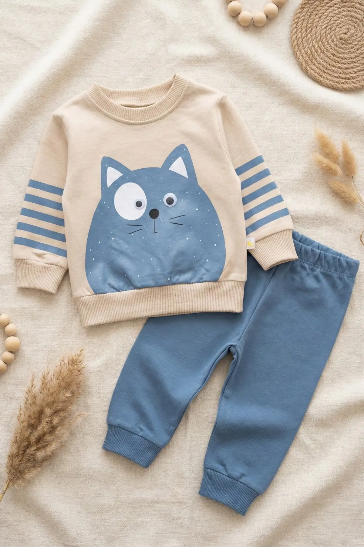 Minik bebeğiniz için şıklığı ve konforu bir arada sunan Bobişko Kedi Desenli Pamuklu 2'li Erkek Bebek Takımı, özel günlerde ve günlük kullanımda vazgeçilmeziniz olacak. İnce detayları ve şık tasarımı ile bebeğinizin tarzını yansıtan bu takım, gün boyu rahatlık sağlar.