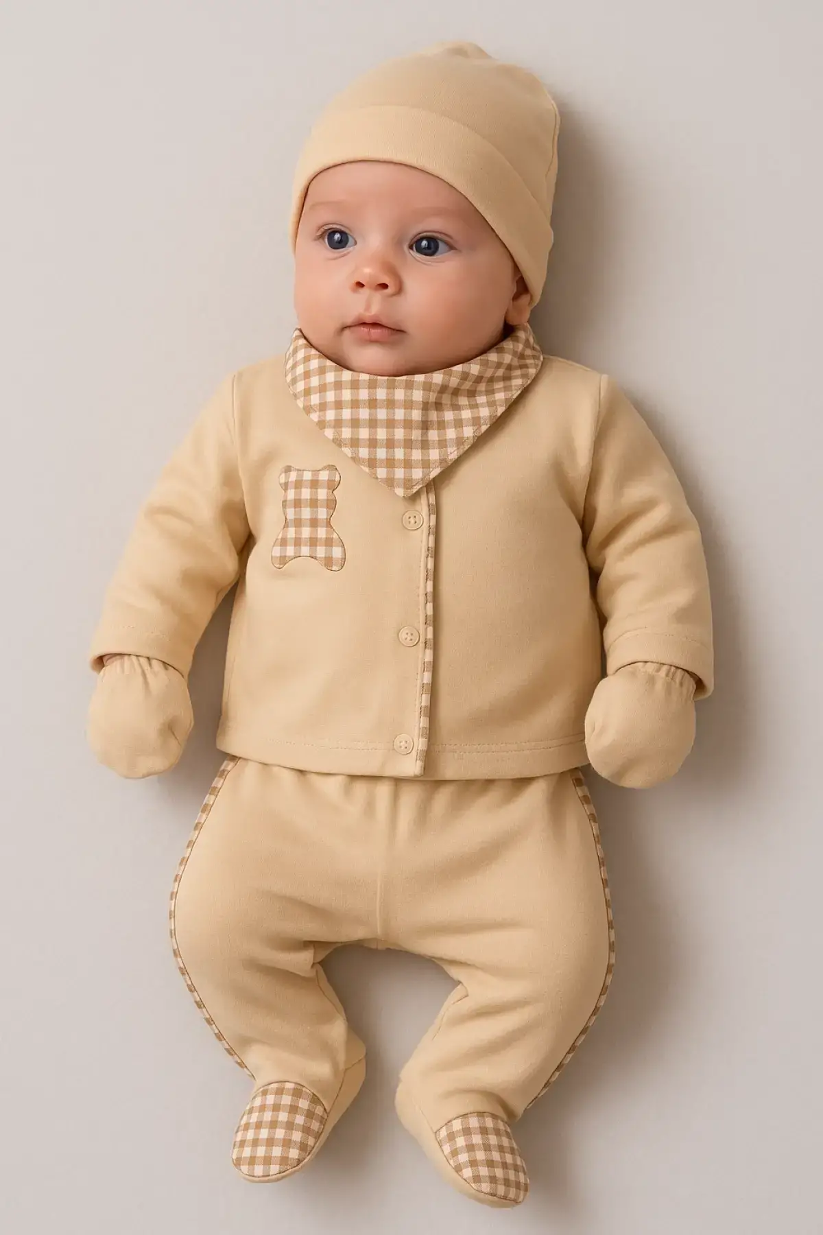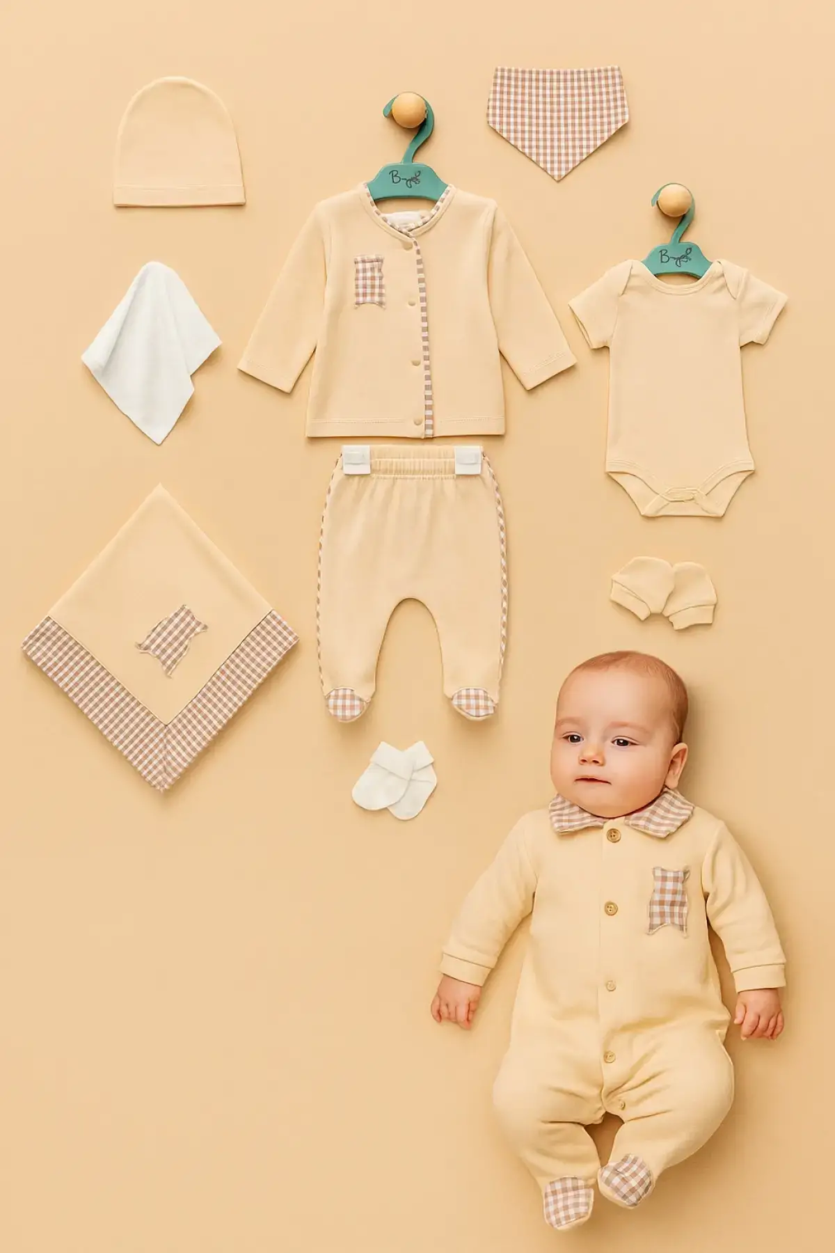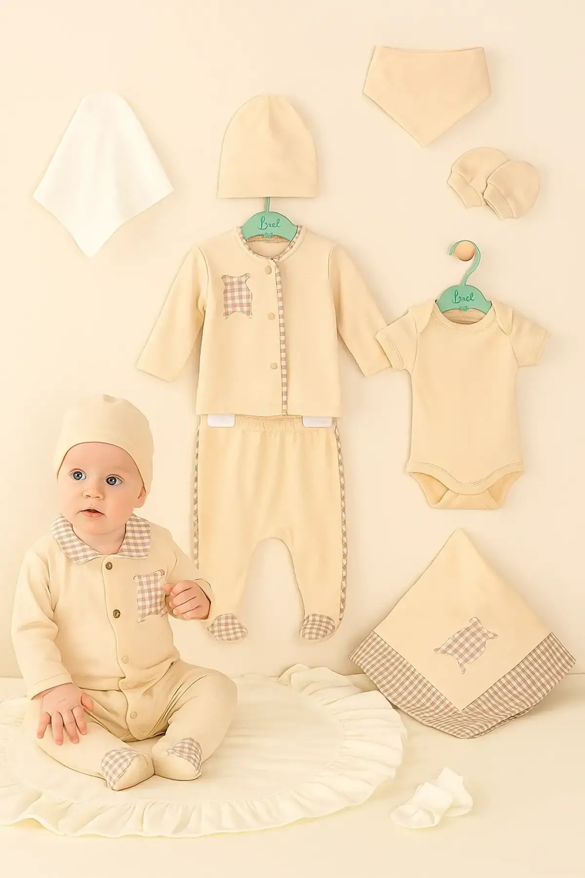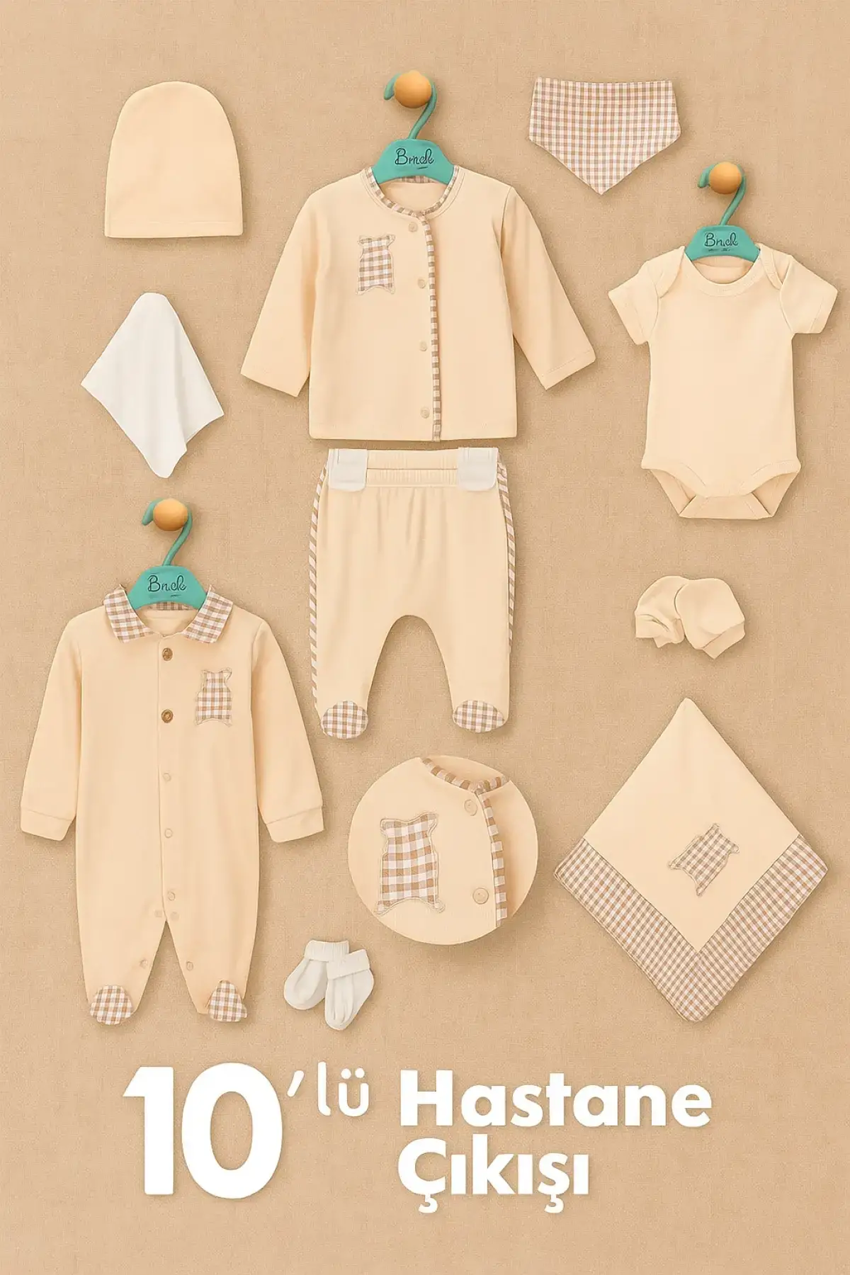 Begi Pitikareli %100 pamuk 10'lu erkek bebek hastane çıkış setiyle bebeğinizi şımartın!