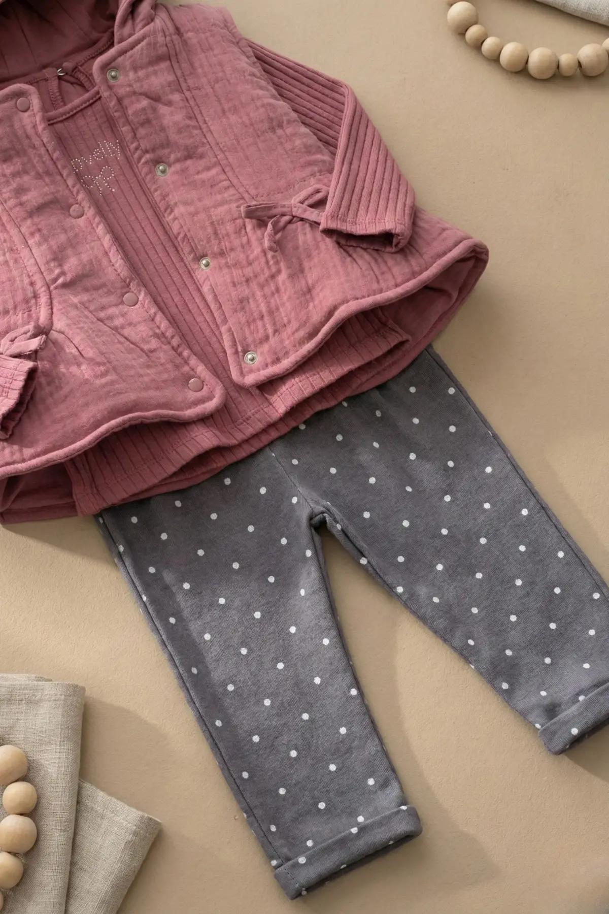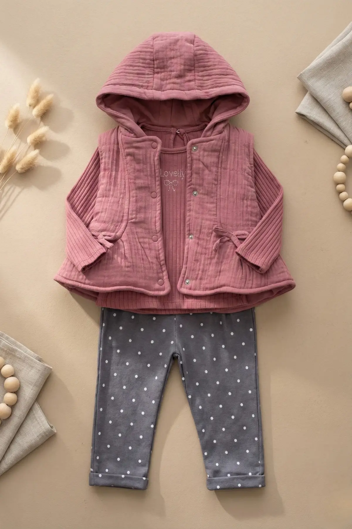 Yelekli Puanlı Mevsimlik Pamuklu Kız Bebek Takım