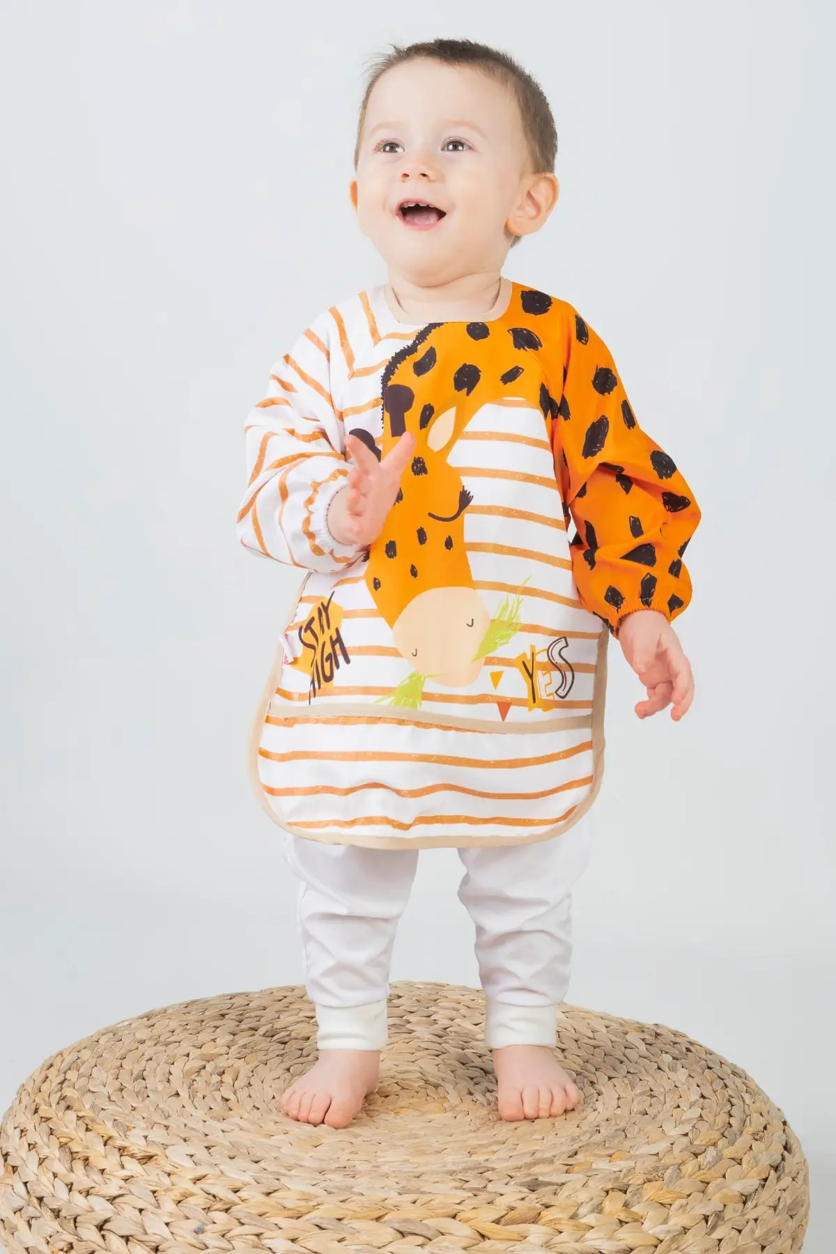 Bebechi markasının ürettiği Zürafa Desenli Sıvı Geçirmez Uzun Kollu Unisex Bebek Mama ve Aktivite Önlüğü, hem şık hem de pratik bir seçenektir. 6-24 aylık bebekler için uygun olan önlük, yemek zamanlarındaki kirlenmeleri engellerken aynı zamanda bebeklerin rahat hareket etmelerine olanak tanır.